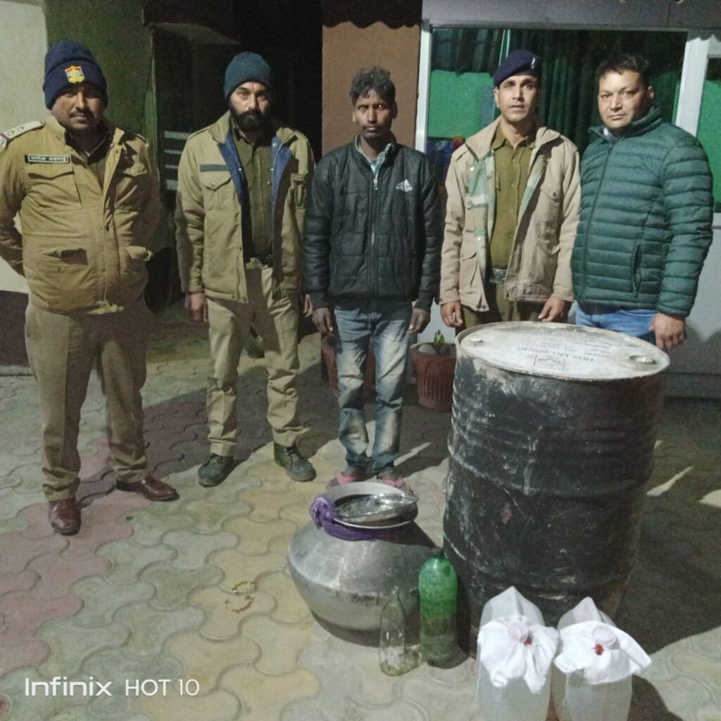 वरिष्ठ पुलिस अधीक्षक की आदेशानुसार क्षेत्रीय पुलिस अधीक्षक के निर्देशन में नशे के खिलाफ चलाए जा रहे अभियान के अंतर्गत कार्यवाही करते हुए भिक्कमपुर चौकी प्रभारी मनोज ममगाई,और कांस्टेबल तरसेम सिंह, दीपक मंमगाई और राजेंद्र बिष्ट ने मुखबिर की सूचना पर गंगा पार खादर में अवैध कच्ची शराब बनाते हुए बबलू पुत्र जयसिंह को शराब की भट्टी उपकरण व 20 लीटर तैयार कच्ची शराब के साथ गिरफ्तार किया जबकि उसका दूसरा साथी गुड्डू पुत्र मांगेराम दोनों निवासी जसपुर रंजीतपुर फरार होने में कामयाब रहा। इस दौरान पुलिस ने 200 लीटर लाहन भी नष्ट किया।