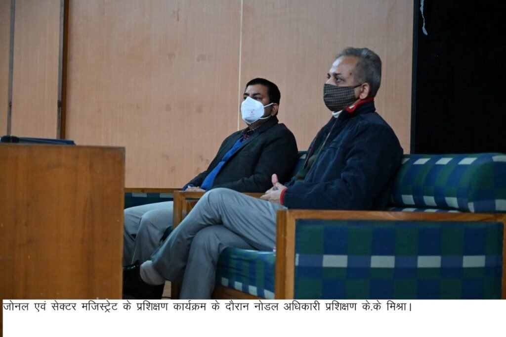 देहरादून । जिला निर्वाचन अधिकारी/जिला मजिस्ट्रेट डाॅ0 आर राजेश कुमार के दिशा-निर्देशों में सर्वे आॅफ इण्डिया आर्डिटोरियम में नोडल अधिकारी प्रशिक्षण/अपर जिलाधिकारी वित्त एवं राजस्व के.के मिश्रा की देख-रेख में विधानसभा सामान्य निर्वाचन-2022 को शांतिपूर्वक एवं र्निविघ्न सम्पादित कराने हेतु नियुक्त जोनल एवं सेक्टर मजिस्ट्रेट को प्रशिक्षक जिला पंचायतराज अधिकारी एम मुस्तफा खान एवं सेवायोजन अधिकारी प्रवीन गोस्वामी द्वारा प्रशिक्षण देते हुए संबंधित अधिकारियों को उनके दायित्वों के बारे में बारिकी से जानकारी एव निर्वाचन के सभी पहलुओं के बारे में बताया गया।