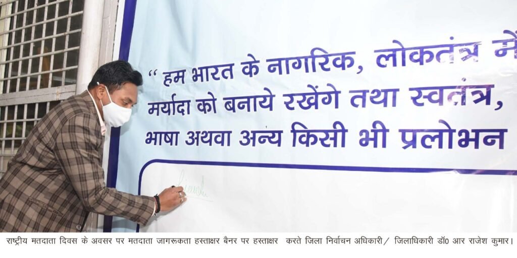 जिला निर्वाचन अधिकारी/ जिलाधिकारी डाॅ0 आर राजेश कुमार ने कहा कि राष्ट्रीय मतदाता दिवस बेहद खास दिवस है यह दिवस हमें लोकतंत्र के प्रति हमें अपने अधिकारों एवं जिम्मेदारियों का बोध कराता है।