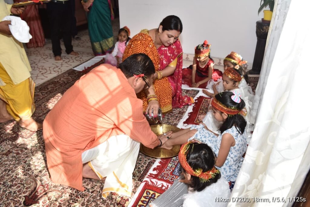 मुख्यमंत्री पुष्कर सिंह धामी नौ दुर्गा की प्रतीक नौ कन्याओं को भोजन कराया