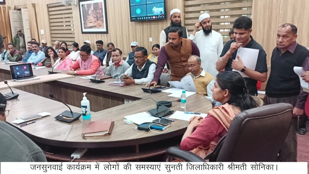 देहरादून । जिलाधिकारी सोनिका की अध्यक्षता में ऋषिपर्णा सभागार कलेक्टेªट में जनसुनवाई कार्यक्रम का आयोजन किया गया। जनसुनवाई में आज 96 शिकायतें प्राप्त हुई। जनसुनवाई में बिजली, पानी, सिंचाई, आपसी विवाद, शिक्षा, आरटीई के माध्यम से एडमिशन दिलाने, परिजनों द्वारा परेशान किए जाने, खनन, भूमि संबंधी प्रकरण प्राप्त हुए। जनसुनवाई के दौरान एक महिला ने अपने दो वर्ष के बच्चे के साथ जिलाधिकारी को पुष्पगुच्छ तथा बच्चे ने पैन भेंट कर आभार व्यक्त किया। उक्त महिला गत सप्ताह जनसुनवाई में अपनी शिकायत लेकर पहुंची थी, जिस पर जिलाधिकारी ने सम्बन्धित विभागों को कार्यवाही के निर्देश दिए गए थे, जिस पर रेखीय विभागों द्वारा त्वरित कार्यवाही करते हुए बच्चे को उसकी माॅ को बच्चे से मिलवाया।