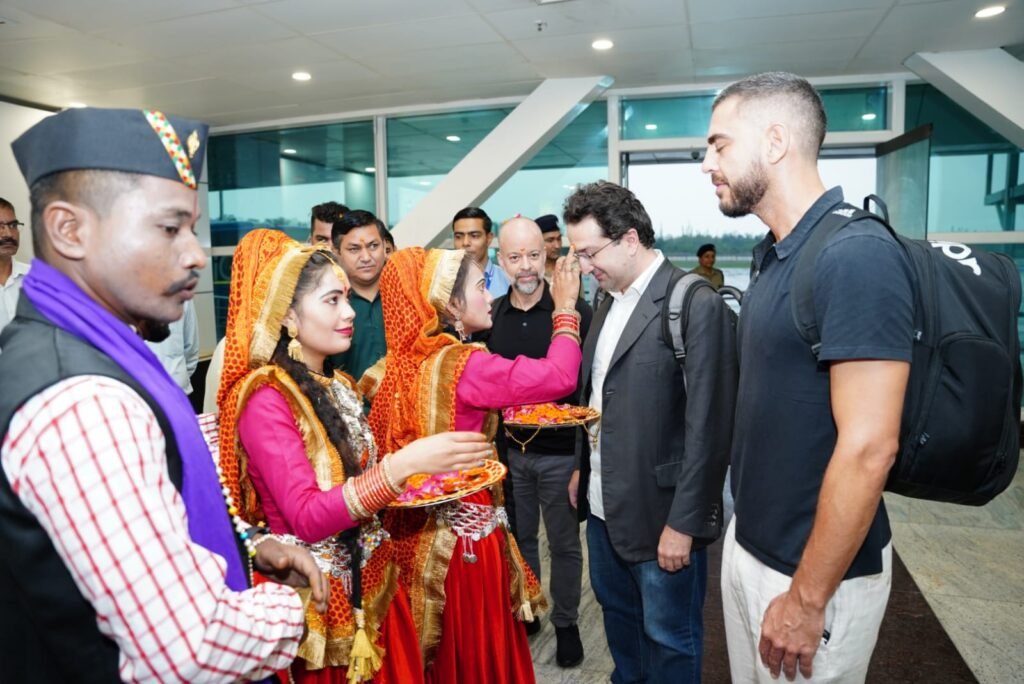 देहरादून । जौलीग्रांट एयरपोर्ट पर प्रातः की फ्लाईट से जी 20 सम्मेलन में प्रतिभाग करने ब्राजील से तीन प्रतिनिधिमंडल के सदस्य पहुंचे जिनका स्थानीय संस्कृति एवं लोक परंपराओं से ढोल दमाऊ के साथ भव्य स्वागत किया गया।