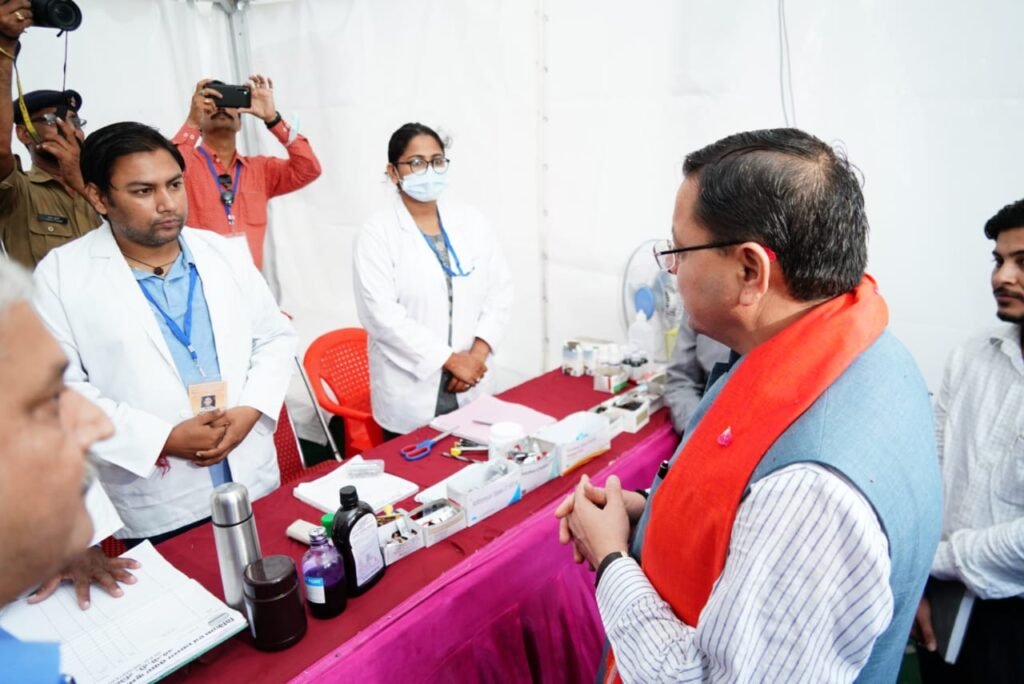 मुख्यमंत्री पुष्कर सिंह धामी ने शंकराचार्य चौक स्थित अस्थाई चिकित्सा शिविर का निरीक्षण करते हुए अधिकारियों को निर्देशित किया कि कावड़ियों के स्वास्थ्य संबंधित पर्याप्त व्यवस्था विभिन्न स्थानों पर सुनिश्चित हो। साथ ही कावड़ पट्टी के प्रत्येक स्थान पर साफ़ सफाई का विशेष ध्यान रखा जाए। पैदल जा रहे कावड़ियों की सुरक्षा का भी ध्यान रखा जाए।