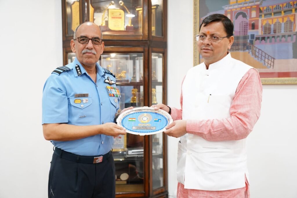देहरादून। मुख्यमंत्री पुष्कर सिंह धामी से शुक्रवार को मुख्यमंत्री आवास में एयर मार्शल, रवि गोपाल कृष्णा कपूर, एयर ऑफिसर कमांडिंग -इन -चीफ, मध्य वायु कमान ने शिष्टाचार भेंट की।