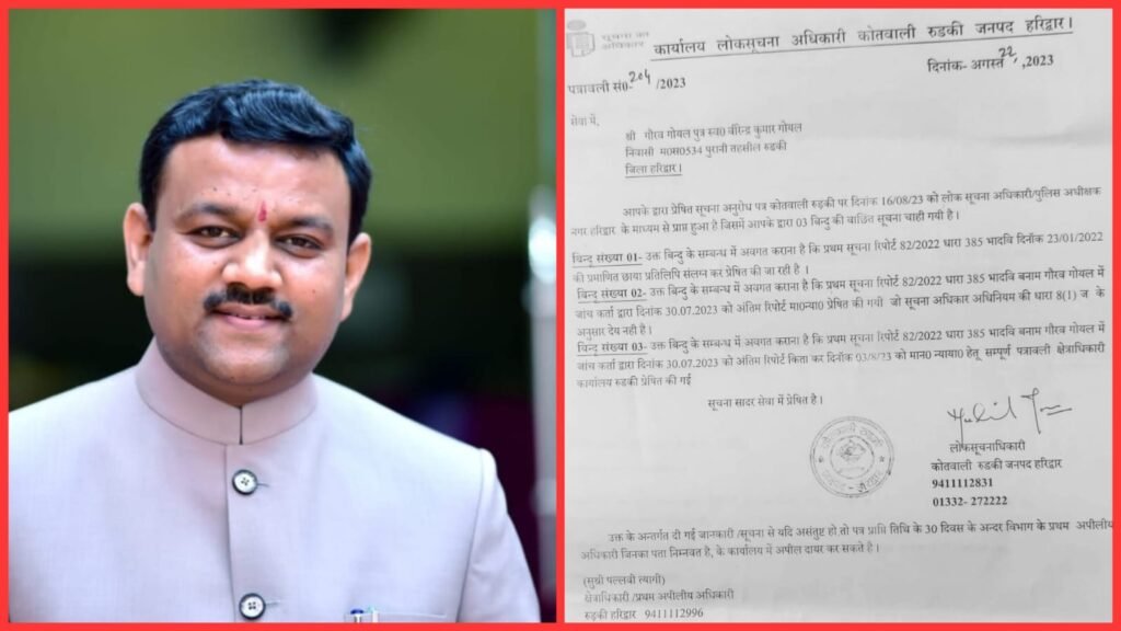 रुड़की।निवर्तमान मेयर गौरव गोयल को शासन से क्लीन चिट मिलने के बाद आज एक और राहत मिली है।यह राहत उन्हें वॉइस रिकॉर्डिंग के मामले में है,जिसमें नगर के सुबोध गुप्ता नामक व्यक्ति द्वारा जनवरी वर्ष 2022 में सिविल लाइन कोतवाली में तत्कालीन मेयर गौरव गोयल के खिलाफ वॉइस रिकॉर्डिंग का एक मुकदमा दर्ज कराया था,जिसमें गौरव गोयल की वॉइस रिकॉर्डिंग को लेकर पुलिस द्वारा सभी पहलुओं पर बारीकी से जांच की गई।इस जांच के उपरांत सितंबर 2023 को पुलिस ने अंतिम रिपोर्ट लगाकर संपूर्ण पत्रावली न्यायालय में प्रषित की।इस जांच में सुबोध गुप्ता नामक व्यक्ति द्वारा दर्ज कराया गया मुकद्दमा पूरे तरीके से निराधार और झूठा पाया गया।निवर्तमान मेयर गौरव गोयल पर दर्ज कराए गए झूठे मुकद्दमे को लेकर जो जांच सामने आई है उसमें गौरव गोयल को पूर्ण रूप से निर्दोष पाया गया है।