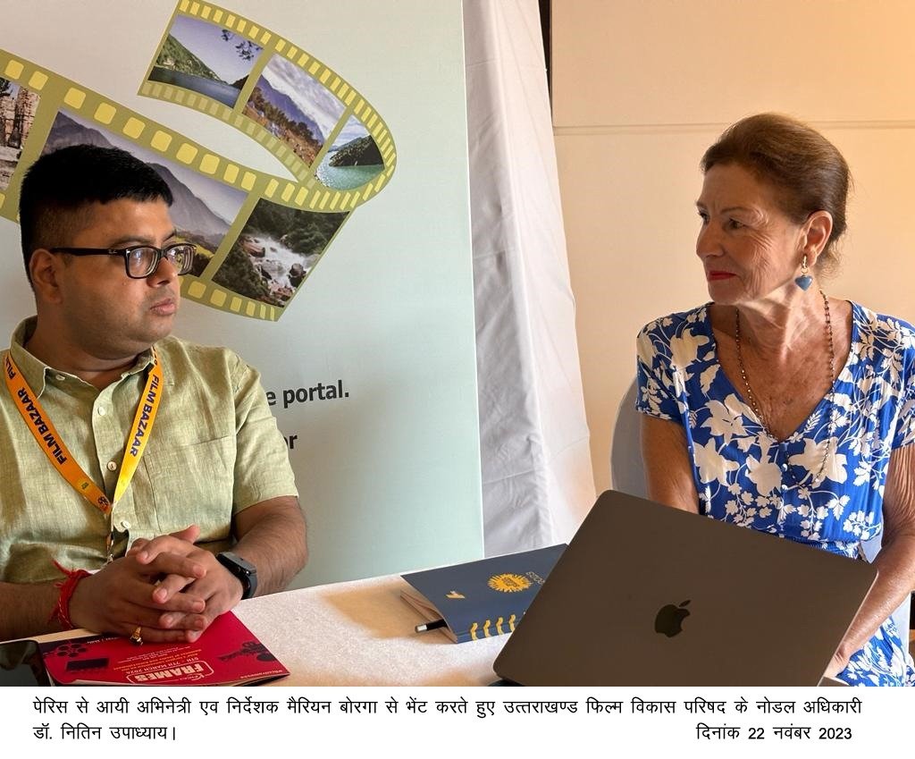 नोडल अधिकारी डॉ नितिन उपाध्याय द्वारा बताया गया कि 20 नवम्बर से 22 नवम्बर 2023 तक विभिन्न फ़िल्म निर्माताओ एवं प्रोडक्शन हाउस द्वारा जानकारी प्राप्त की गई है, जिसमे पेरिस से आयी अभिनेत्री एवं निर्देशक मैरियन बोरगा ने उत्तराखंड की फ़िल्म नीति की सराहना की। उन्होंने कहा वह उत्तराखंड में 10 वर्ष पहले आयी थी। यहाँ के नैसर्गिक एवं धार्मिक स्थल काफी सुंदर है। उन्होंने कहा वे फ्रांस के फ़िल्म निर्माताओं को उत्तराखंड में निवेश व शूटिंग के लिए प्रयास करेंगी।