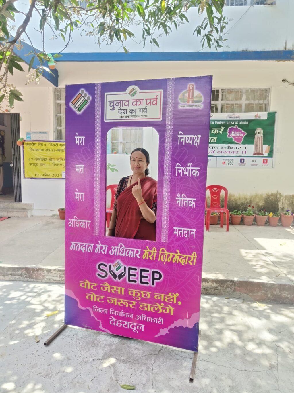 देहरादून। मुख्य सचिव श्रीमती राधा रतूड़ी ने शुक्रवार को मतदान स्थल स्कॉलर होम स्कूल जूनियर साइड, राजपुर, देहरादून पहुंच कर मतदान किया | इस अवसर पर मुख्य सचिव श्रीमती राधा रतूड़ी ने कहा कि हम सबका कर्तव्य एवं दायित्व है कि अपने मताधिकार का प्रयोग कर लोकतन्त्र में अपनी भागीदारी निभाएं।
