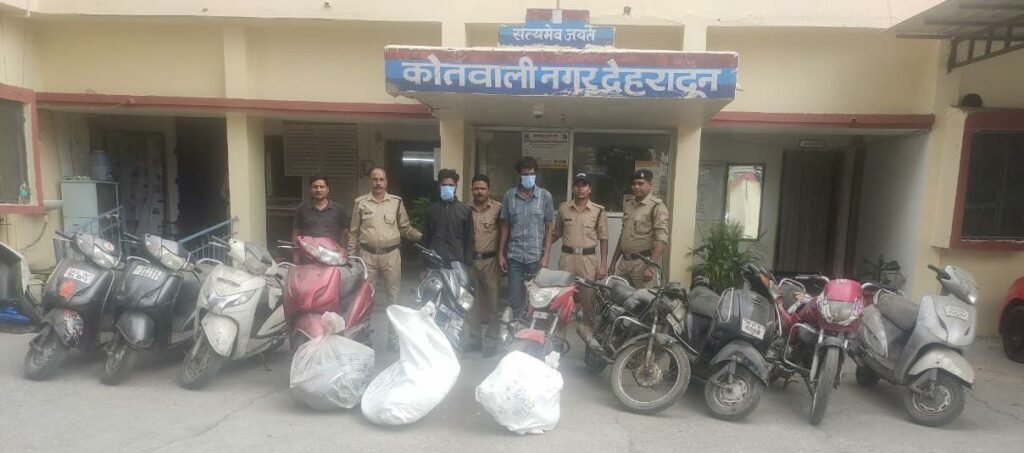 देहरादून । बीती 06-05-24 को वादी रिजवान पुत्र अब्दुल शकूर निवासी फतेहपुर सहारनपुर उ0प्र0 द्वारा थाना कोतवाली नगर पर दून हास्पिटल के पास से अपनी सुपर स्प्लेंडर मोटर साइकिल संख्या: यू0पी0-11-बीजे-6171 चोरी होने के सम्बन्ध में तहरीर दी गयी, जिस पर थाना कोतवाली नगर में तत्काल मु0अ0सं0: 230/24 धारा: 379 भादवि का अभियोग पंजीकृत किया गया। वाहन चोरी की बढ़ती घटनाओ का संज्ञान लेते हुए एसएसपी देहरादून द्वारा घटनाओ के अनावरण हेतु तत्काल पुलिस टीम गठित कर आवश्यक निर्देश दिये गये।