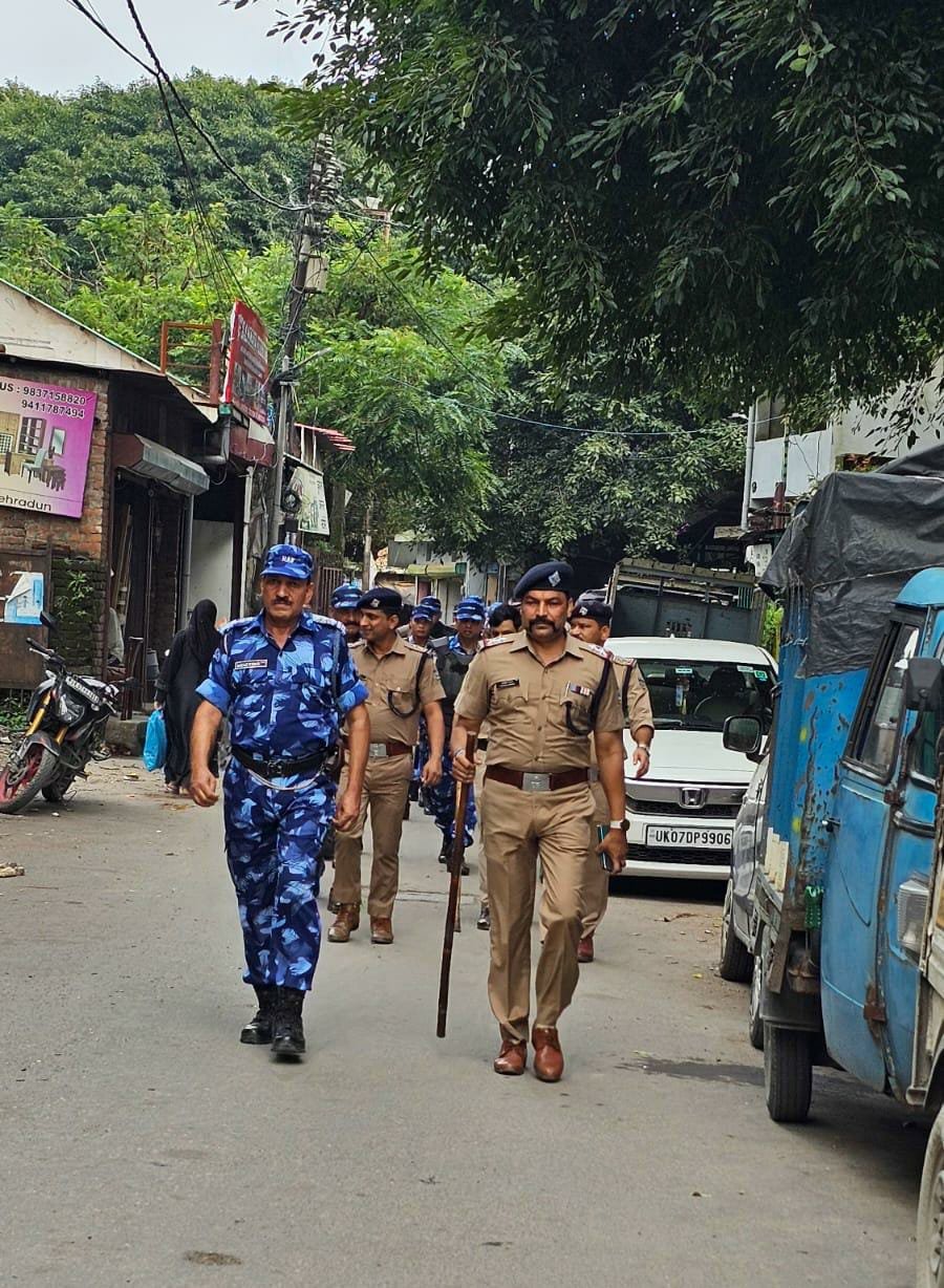 देहरादून। दून पुलिस द्वारा रैपिड एक्शन फोर्स के साथ मिलकर जनपद के अलग-अलग थाना क्षेत्रों में संयुक्त जनसम्पर्क अभियान चलाया गया। अभियान के दौरान रैपिड एक्शन फोर्स की टीम द्वारा स्थानीय पुलिस के साथ कोतवाली नगर क्षेत्र में लक्कड मण्डी, रीठा मण्डी, मुस्लिम कालोनी, खुडबुडा, धामावाला, लक्खीबाग तथा पटेलनगर क्षेत्र में मौहल्ला देहराखास, काली मन्दिर, इद्रेश, लालपुल, बाजार चौकी आदि स्थानों का पैदल भ्रमण कर क्षेत्र की भौगोलिक स्थिति, साम्प्रदायिक सौहार्द, पूर्व में घटित साम्प्रदायिक घटनाओं, क्षेत्रों के संवेदनशील एवं अति संवेदनशील इलाकों की पूर्ण जानकारी हासिल की गयी।