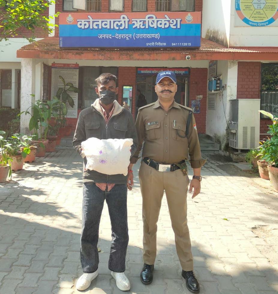 दिये गये निर्देशों के अनुपालन में कोतवाली ऋषिकेश पर गठित पुलिस टीम द्वारा कोतवाली क्षेत्र में रात्रि गश्त/चैकिंग के दौरान मुखबिर की सूचना पर दिनांक: 28-10-25 को मंसा देवी पुलिया के पास से एक अभियुक्त भोला पुत्र श्री चन्नु साहनी निवासी झुग्गी बस्ती मायाकुण्ड निकट चंद्रभागा नदी थाना ऋषिकेश जनपद देहरादून (उम्र -25 वर्ष) को 01 किलो 181 ग्राम अवैध गांजे के साथ गिरफ्तार किया गया। अभियुक्त के विरूद्ध कोतवाली ऋषिकेश मे एनडीपीएस एक्ट के अन्तर्गत अभियोग पंजीकृत किया गया।