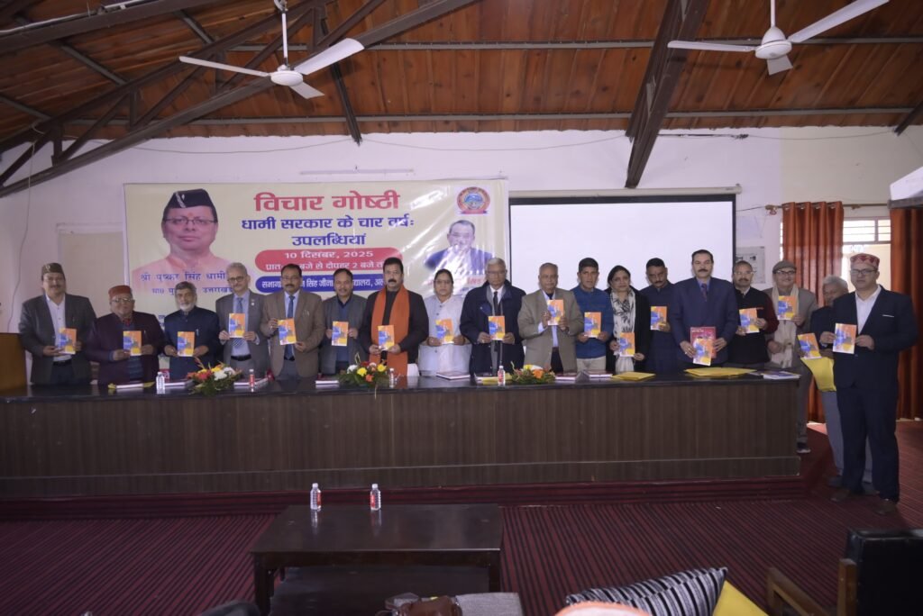 सोबन सिंह जीना विश्वविद्यालय के गणित विभाग के ऑडिटोरियम में आयोजित इस गोष्ठी का उद्देश्य बीते चार वर्षों में राज्य में हुए विकास कार्यों की समीक्षा, जनकल्याणकारी योजनाओं के प्रभाव का आकलन तथा भविष्य की प्राथमिकताओं पर सार्थक विमर्श करना रहा। गोष्ठी में राज्य सरकार की उपलब्धियों और चुनौतियों को लेकर विचार साझा किये गए। वक्ताओं ने कहा कि प्रधानमंत्री नरेंद्र मोदी के मार्गदर्शन में मुख्यमंत्री पुष्कर सिंह धामी केंद्र सरकार से बेहतर समन्वय स्थापित करते हुए राज्य को आगे बढ़ाते हुए नजर आ रहे हैं।